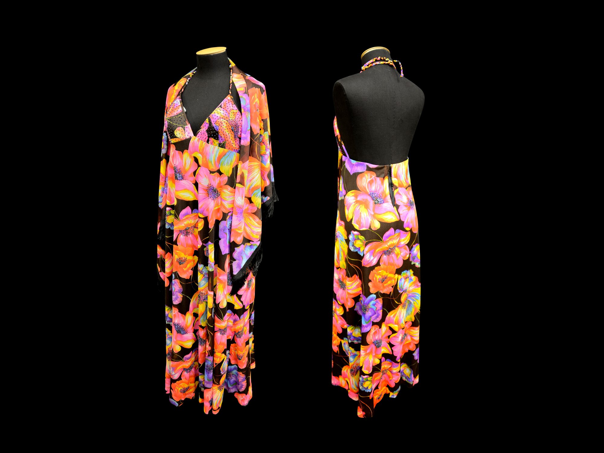 Rosalie Gwilliam designed and made a halter neck dress in 1979, to wear to a conference she was attending in the USA. Whanganui born and bred, Rosalie was a fascinating and very motivated woman. She was an award-winning fashion designer from the 1960s to 1990s, an award-winning photographer from the 1990s to 2014 as well as an inspiring teacher and a pilot.
